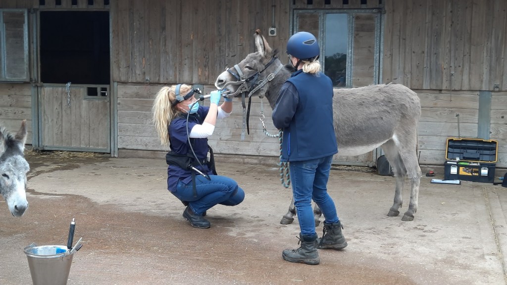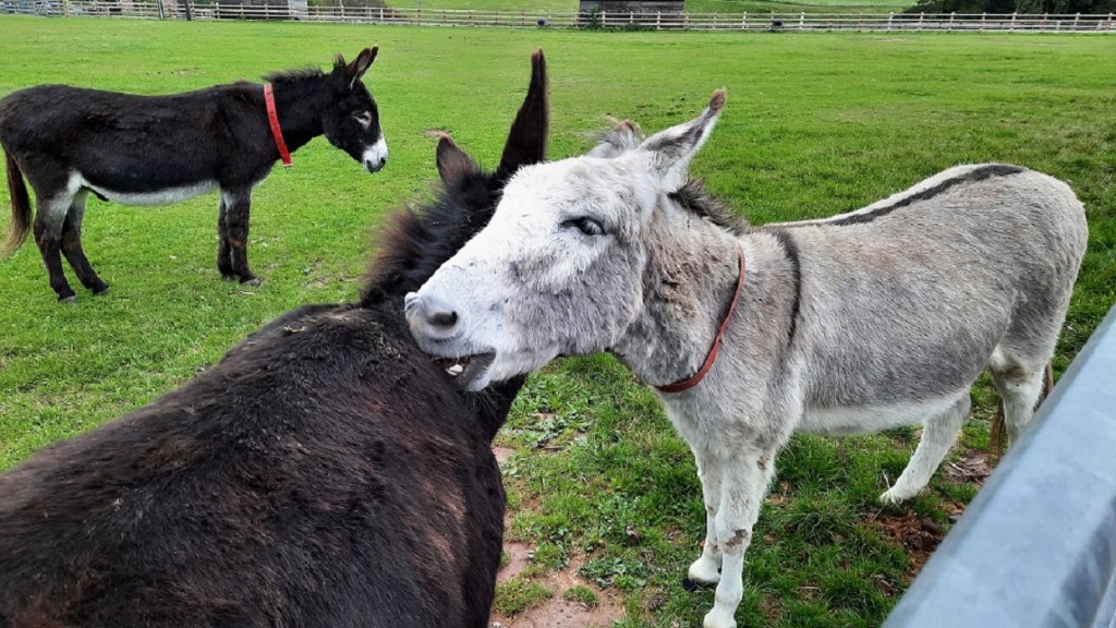 Today’s forecast was for a reasonable morning – but with rain sweeping in later in the day. We decided to drive the four miles to the Donkey Sanctuary at Sidmouth. We found there have been improvements since our last visit a few years ago. Several new stables and a visitors’ centre had been built. The Sanctuary covers a large area of ground which has been laid out with walk-ways around the various stables and paddocks. Since it is run as a charity they do more than look after hundreds of abandoned animals. They support the training of vets and administer help around the world where donkeys are essential for day to day living. Several donkeys had appointments to see the dentist.
