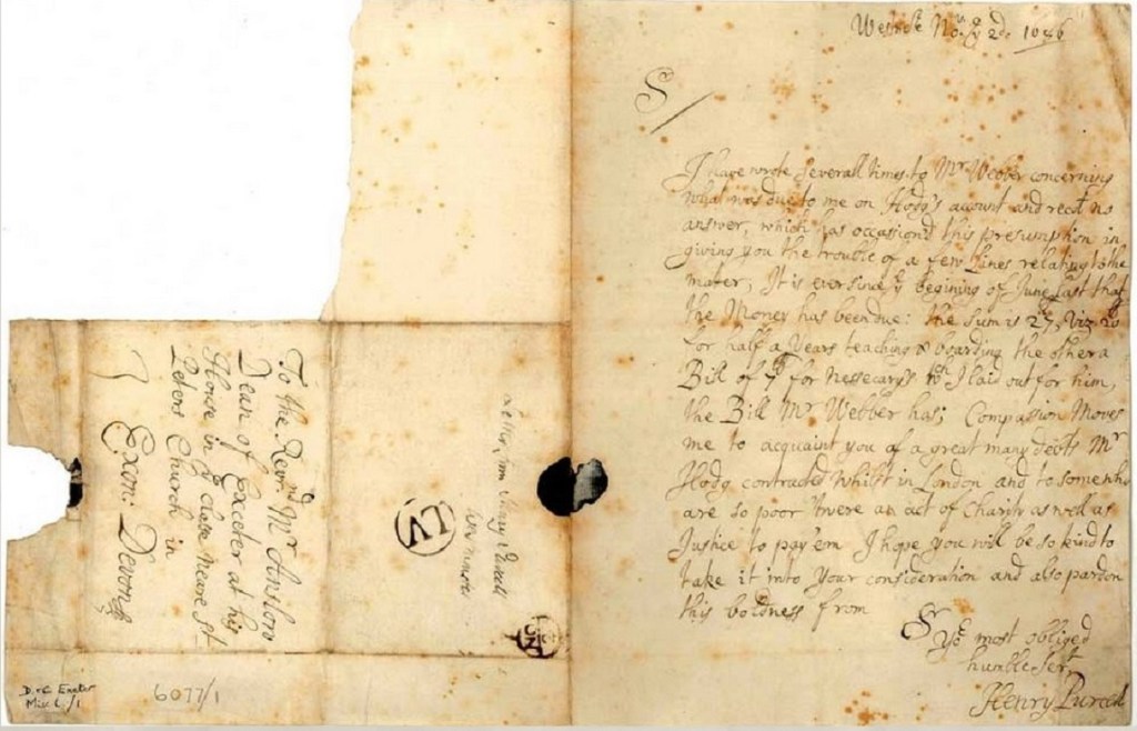 In the Cathedral library, they have an original letter dated 1686 and addressed to the Dean written by Henry Purcell. Apparently, the Dean had an arrangement with him whereby Cathedral scholars were sometimes sent up to London to be tutored. One particular student (a Mr Hodge) failed to pay his fees for many weeks, whilst at the same time, running up debts with several London merchants. Purcell’s claim was for £27 plus an additional £7 – today’s equivalent being around £3000. We are told that Mr Hodge was recalled and Purcell’s bill was finally settled.