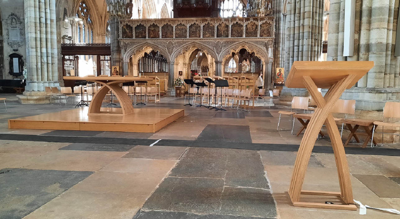 But not everything in the Cathedral dates from the medieval. An altar, a lectern and a credence table have some pleasing, flowing lines, cleverly crafted from laminated, bent and glued plywood.