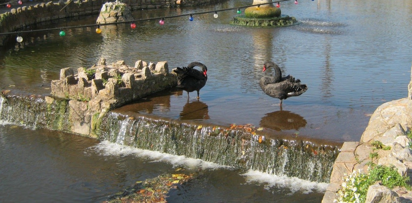 All our family have fond memories of Dawlish. Our first visit was in 1975 when we brought our Sprite Musketeer to stay at Lady’s Mile Caravan site. We have been back to the town on many occasions since then. The main railway line from Cornwall passes through the town and the scenery along that stretch of line is just superb as it first journeys along the seashore, across the estuary, then along the river bank, all the way up to Exeter. During the February storms in 2014 a large section of the seawall was breached and a long length of railway line was left suspended without any support. Rail service was disrupted for months as repair work was carried out. Even now work is on-going to strengthen the sea defences along the mile or so of coastline. I dropped the girls off at the Warren to walk along the sea wall into the town. Meanwhile I took a stroll along Dawlish Water which flows through the town. Many water-fowl live on the water including the famous black swans.