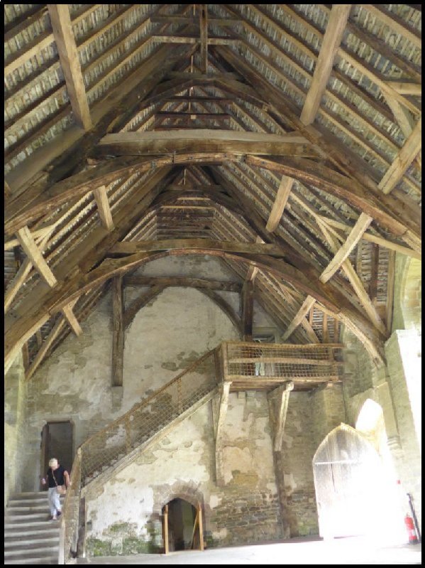 The fine timbered roof in the hall.