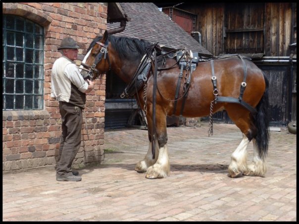 A Shire horse getting ready for work