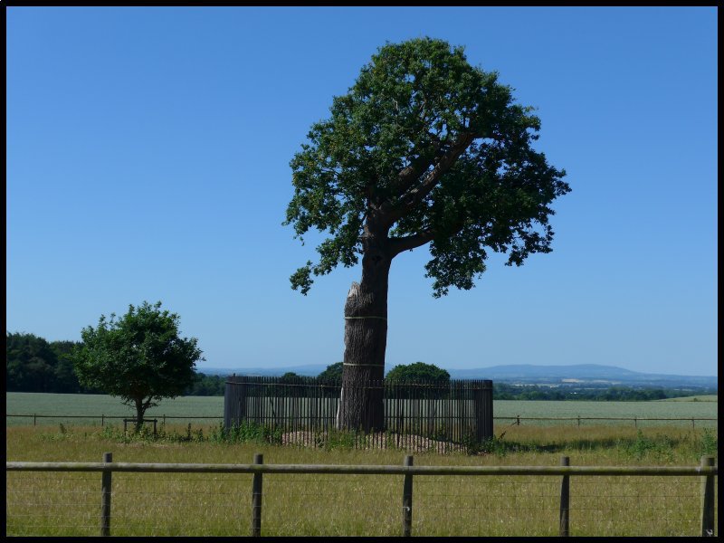 In 1649 King Charles I was executed and the Country became a republic under Oliver Cromwell. The following year his son, Charles returned from exile and marched from Scotland down into the Midlands, gatheringt supporters on the way. He was met by Cromwell’s army near Worcester where the Royalist army was defeated. Afterwards Charles fled with his followers towards Wales and he took refuge first at The White Ladies Priory, then at Boscobel House. His first night was spent hiding in an oak tree in a wood and then in one of the priest holes at the house. The original oak tree, with the rest of the forest has long gone but the replacement tree was grown from an acorn from that original tree. The present tree in turn is nearing the end of its life and will eventually be replaced by a new sapling growing alongside it.
