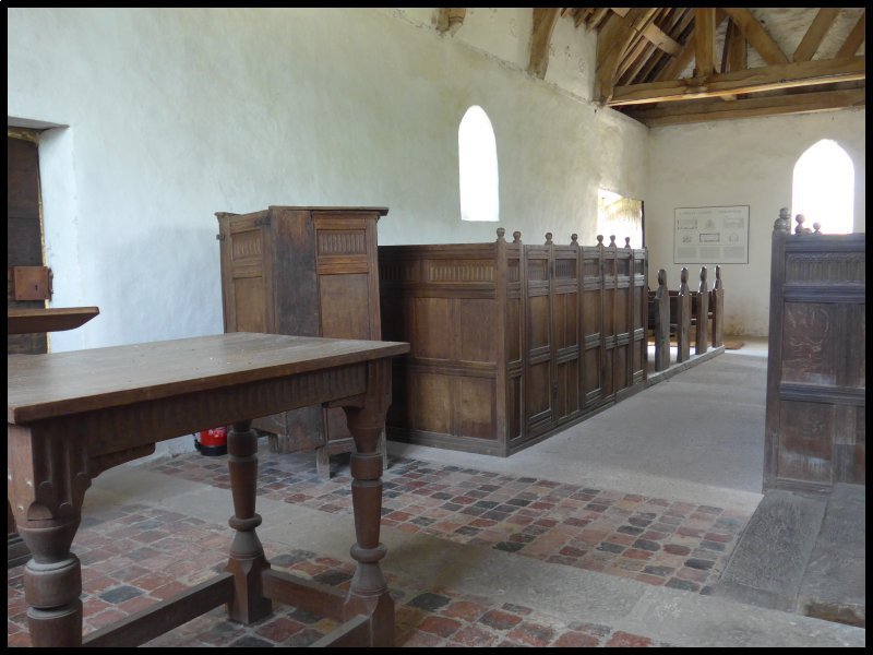 The way back to my site took me past Langley Chapel built during the 17th Century in the Puritan tradition. So no altar, no cross or candle sticks, no stained glass windows or painted panels. Just plain white walls with a table, a pulpit, and box pews with narrow seats. The chapel is no longer consecrated and is in the care of English Heritage.