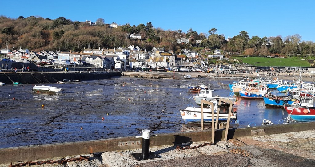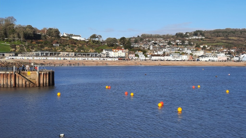 For December, it looked a lovely day, so we prepared a packed lunch and set out in two cars on the short drive to a large car park situated along the shore a short distance from Lyme Regis. But to our surprise, the narrow roads were heaving with traffic. All the car parks were full, and the roads were blocked with slow-moving vehicles looking for somewhere to park. We eventually found a half-full car park but it was half a mile away – and up a 15% gradient hill to the cliff tops.. Daughter, Jen came to the rescue by following me up the hill to the car park, driving me down to the harbour, and then walking down to join the others. Later, she did the same, but in reverse.