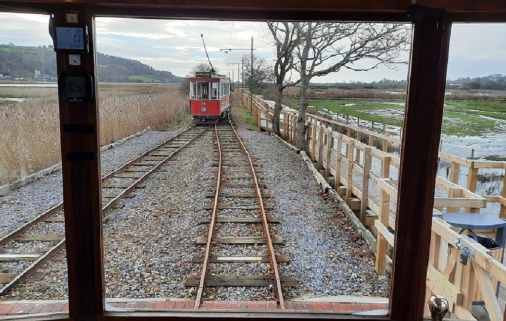 Another pleasant day – weather-wise. Which was just as well because I’d booked tickets to travel along the Wetlands route on the Seaton Tramway. In 1965 the branch line of the railway was one of those closed down by the infamous Dr Beeching. In 1970 the owner of the tramway that had previously operated in Eastbourne took the opportunity to move his trams to use the disused branch line. They have operated at Seaton for over 50 years. Having bought tickets, the purchaser is able to travel for the entire day. Our arrival coincided with the departure of the 11.20, a tram which was initially built as an open tram, but in 2016 was rebuilt as an enclosed single-decker.
