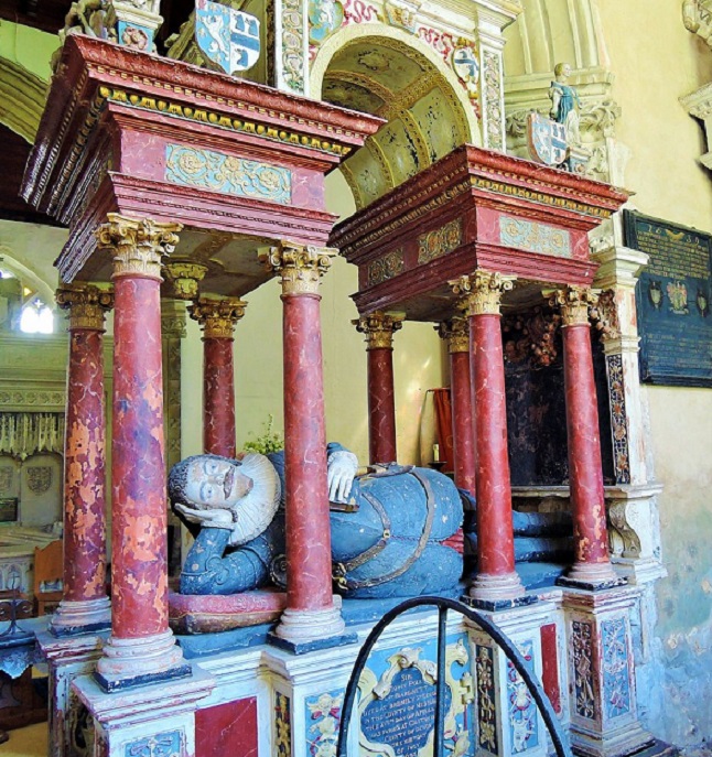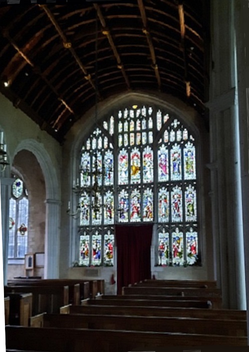 It was only about five miles away, so I was there quickly. It’s a building that has been added to over the centuries but the original building is Norman built on the footprint of an earlier Saxon Church. The tower is Norman but it has an added octagonal lantern built before the Reformation. It is said the design has been copied from the tower of Bruges Town Hall, a building that would have been familiar to the Devon wool merchants of the Middle Ages. At the same time, the two side aisles were added and the magnificent west window was added. In one of the aisles is the Pole Chapel which houses the tomb of Sir John Pole who died in 1635. Hanging in the nave are two huge brass chandeliers, each holding 36 candles.