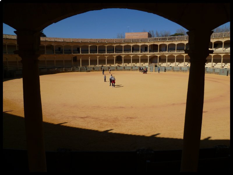 It’s called the new bridge but building started in 1751 and took more than 40 years to complete. The bridge stands 390 feet above the river. Ernest Hemingway was a frequent visitor to Ronda and in his book “For whom the bell tolls”, he describes the execution of Fascist sympathizers who during the Civil War were thrown from a cliff. It is thought that he based that part of his story on events which took place in Ronda. As I continued walking I came to the Bull ring.