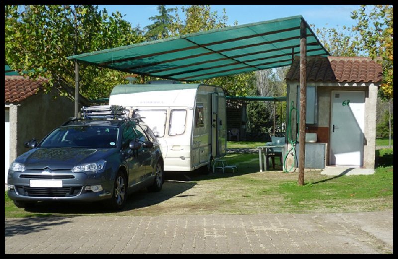From what I have seen so far, it is an excellent site. Pitches are quite large with a high green plastic cover over part of the pitch in order to give shade. Each pitch has its own brick built shower room, nicely tiled with lighting, handbasin and toilet. Water is really hot. Also on each pitch there is a water connection with a 5 metre hosepipe. To one side of every individual toilet block is a power point, table and two plastic bar chairs.