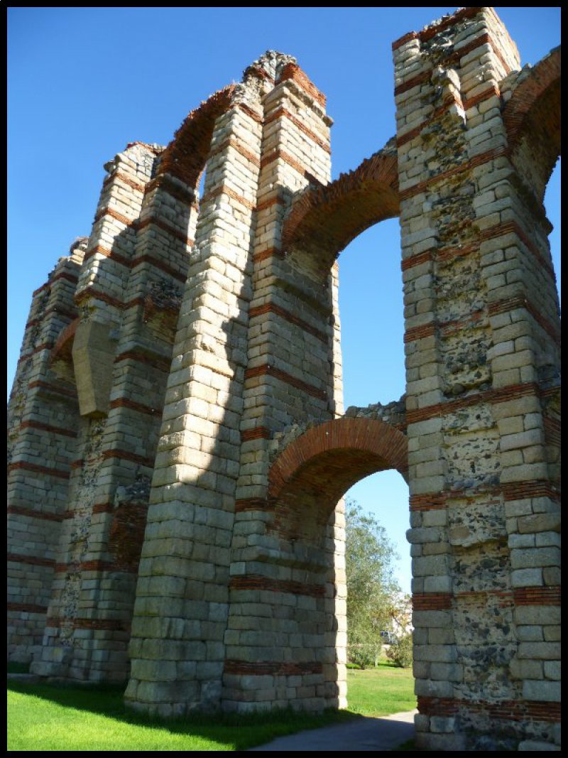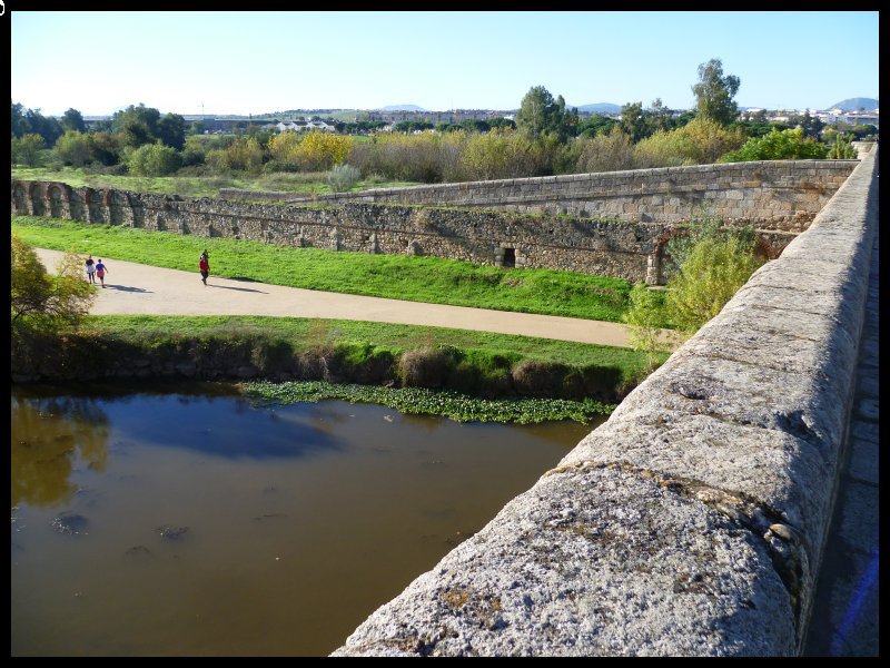 A quick look at my map and a few hundred yards on the bike brought me to the river. It’s here where the Romans built a bridge to carry their road from the south to the north of the Iberian peninsular. It was first erected in 25BC and because the river is wide and susceptible to flooding, it is built on huge rectangular blocks with 60 arches.
