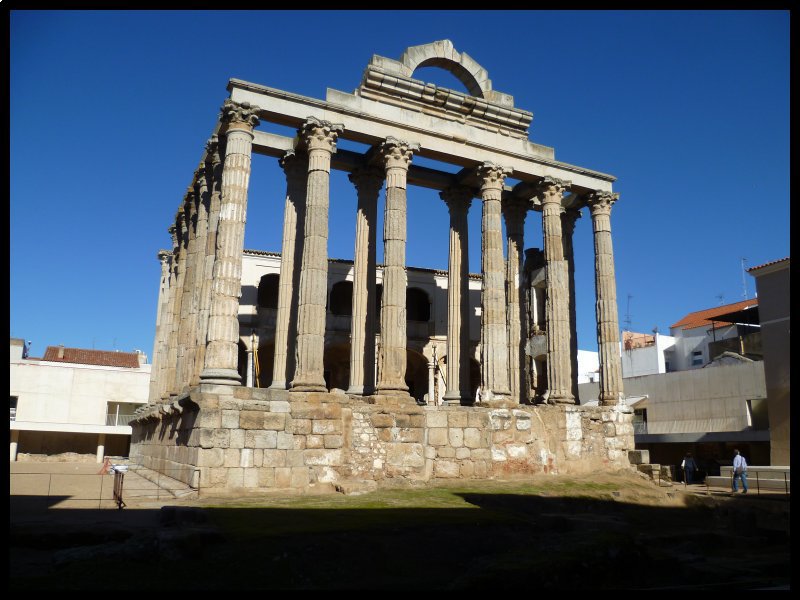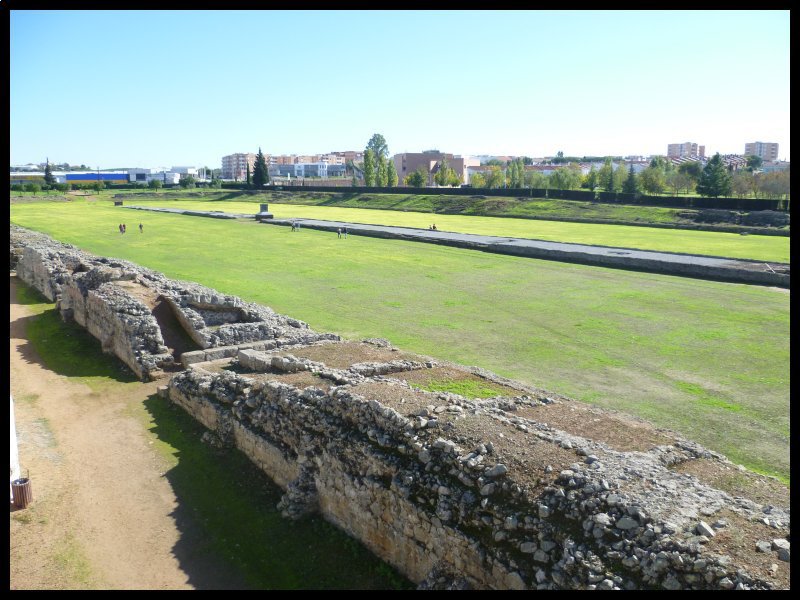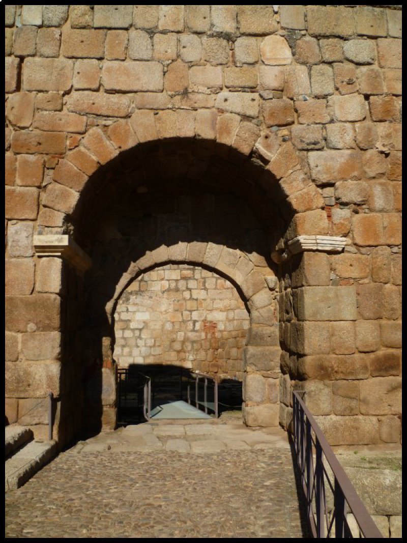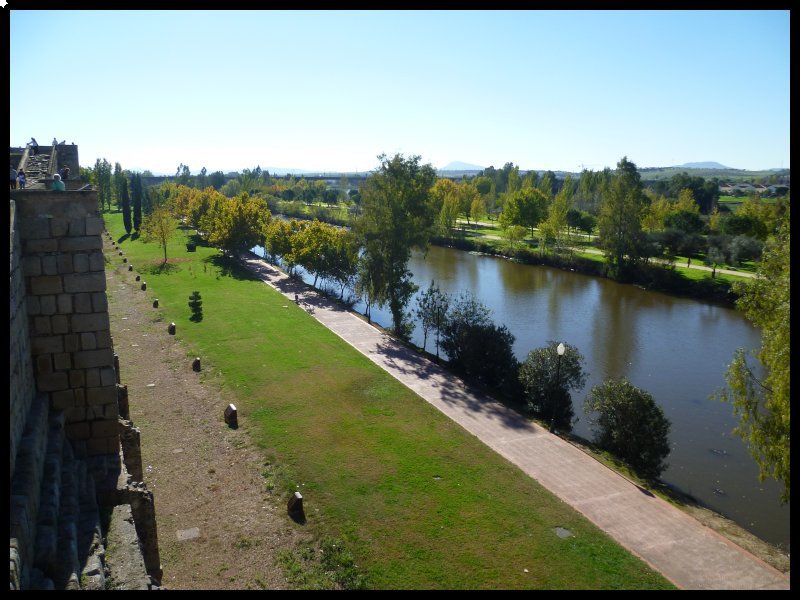 A slight change of plan. I should have moved on today to tow the fifty miles down the motorway to Merida where I intended to stay for two nights. But instead of winding the legs and hitching on, I decided to see Merida just as a day trip. I was ready to leave by 9am and with the motorway being almost free of traffic, I reached Merida before ten. I’d already noted the parking area by the river on street view of Google Earth, so with the GPS co-ords put into Tomtom, it took me to where I wanted to be. Being Sunday, and quite early, there were lots of spaces. Once there, I unloaded my bike and set off armed with a print out of AutoRoute’s map of the town. Merida probably has more Roman Antiquities than any other town in Spain. First I cycled to the Roman Arena and Theatre. I discovered that the admission ticket gets you into all the other historical venues in the town. And all for €6 (due to my OP status) – €12 for our younger brethren.