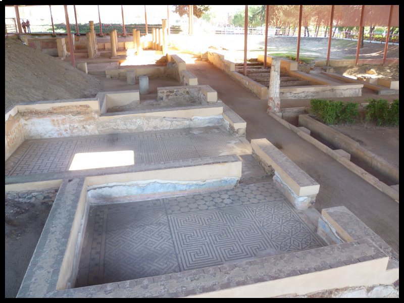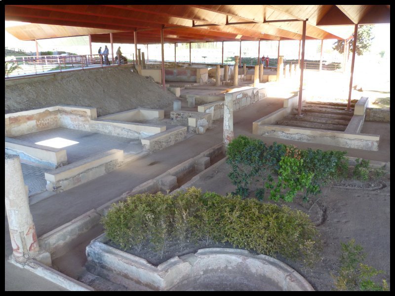 Another half mile or so on the bike brought me to the Villa Mitreo where several mosaic floors and foundations have been excavated. In the same complex but 500 or so yards away is a Roman burial ground where there are several family vaults and dozens of tomb stones.