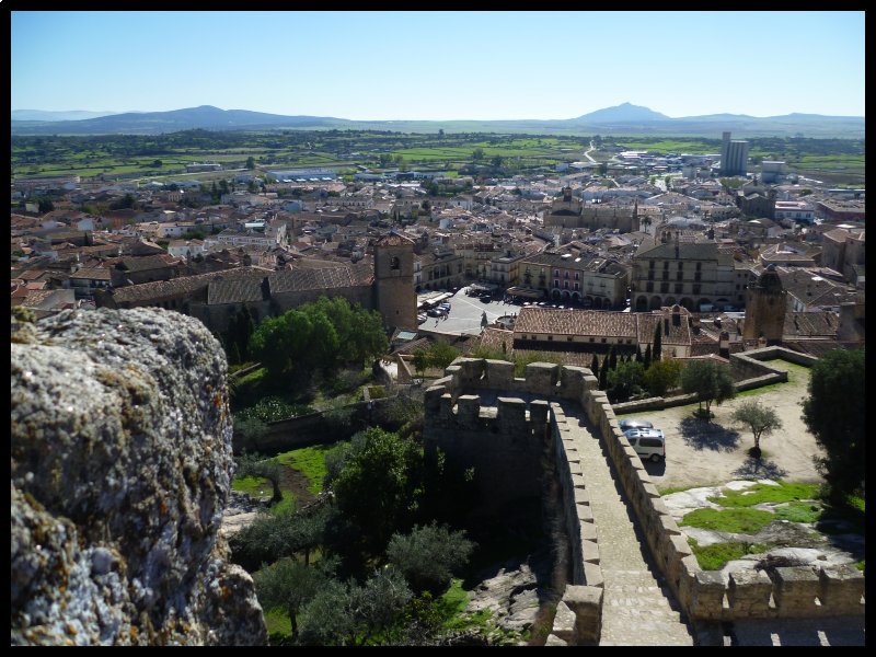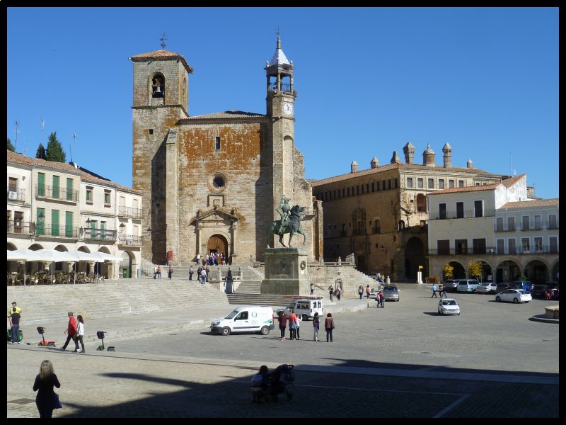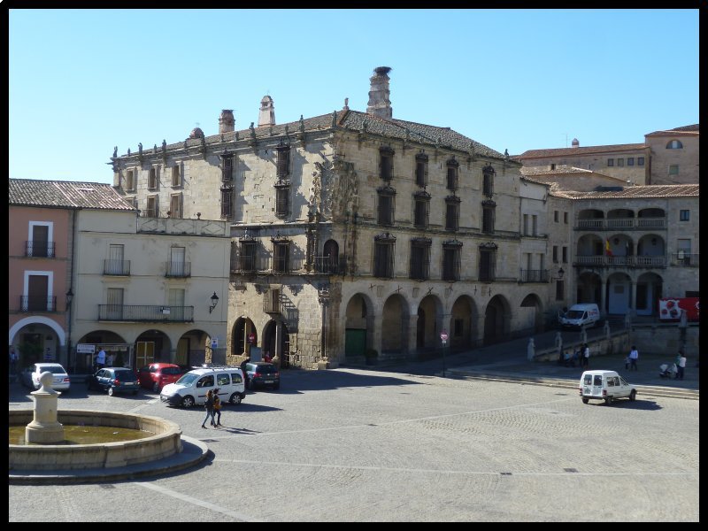 I should have continued on my journey south today. I didn’t – Instead I drove the thirty or so miles to Trujillo. I parked in the underground car park my neighbours told me about. This town is the birthplace of Francisco Pizzaro, the head of a large and wealthy family, who together with his Conquistador friends used extraordinary cruelty to defeat the Inca tribes. Not only did they plunder their treasures but they also took with them ‘old world’ diseases like small pox, flu, chicken pox and typhus which decimated the tribes of the New World. On their return from their voyages they were able to build themselves palaces around the Plaza Major.