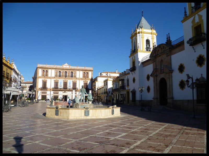 The sunny, cloudless days which began on the morning I left Salamanca look set to continue. This morning I was ready to leave by 9am so I set off on the 30 mile drive to Ronda. Parking was impossible to find in the streets so I went into the underground car park. I emerged on to the Plaza Espana,