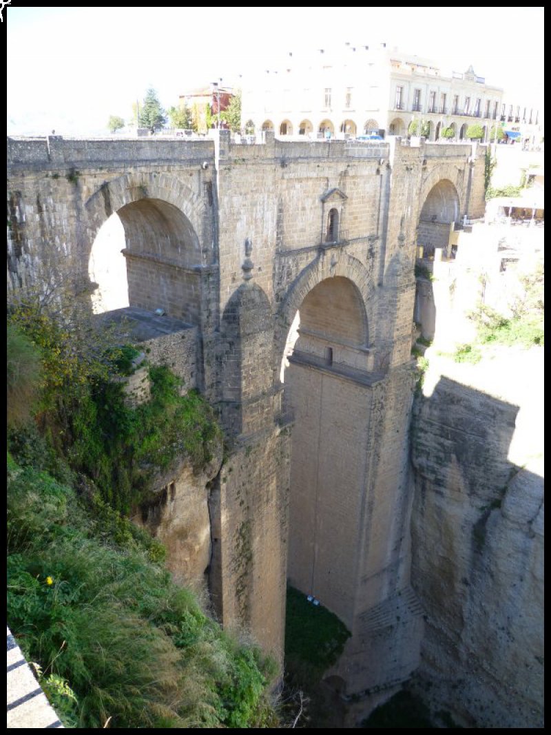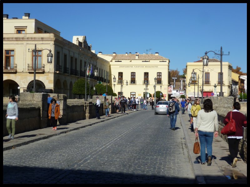 and from there to the main street. I turned to the right, hoping to eventually reach the main attraction of the town. But after walking more than half a mile, I had to retrace my steps for I’d turned the wrong way. Upon regaining my starting point, I found what I was looking for just 200 yards down the road. I joined crowds of photographers taking pictures of the gorge from the Puente Nuevo.