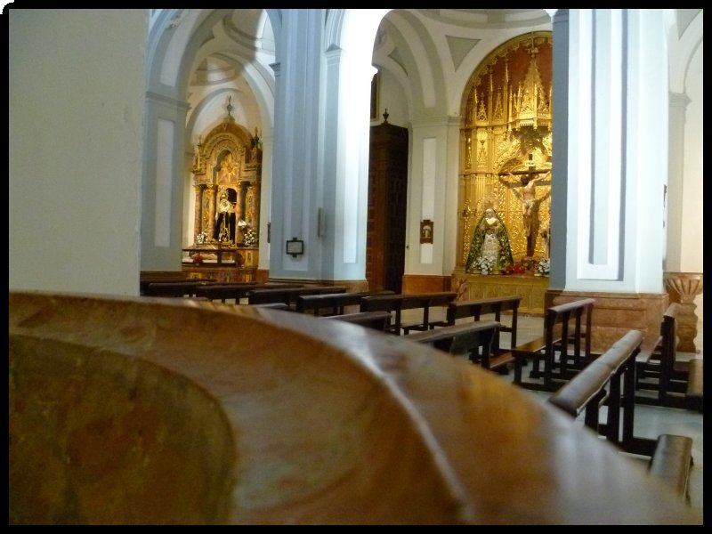 Walking up the extremely steep streets took a lot of effort with many stops for rests, but eventually I arrived at the plaza close by the church. I paid my €2 and went inside. At least I got a seat in the cool. For a small town, the church is particularly well endowed with shrines along the aisles.