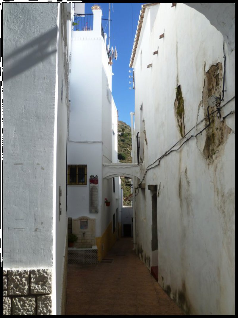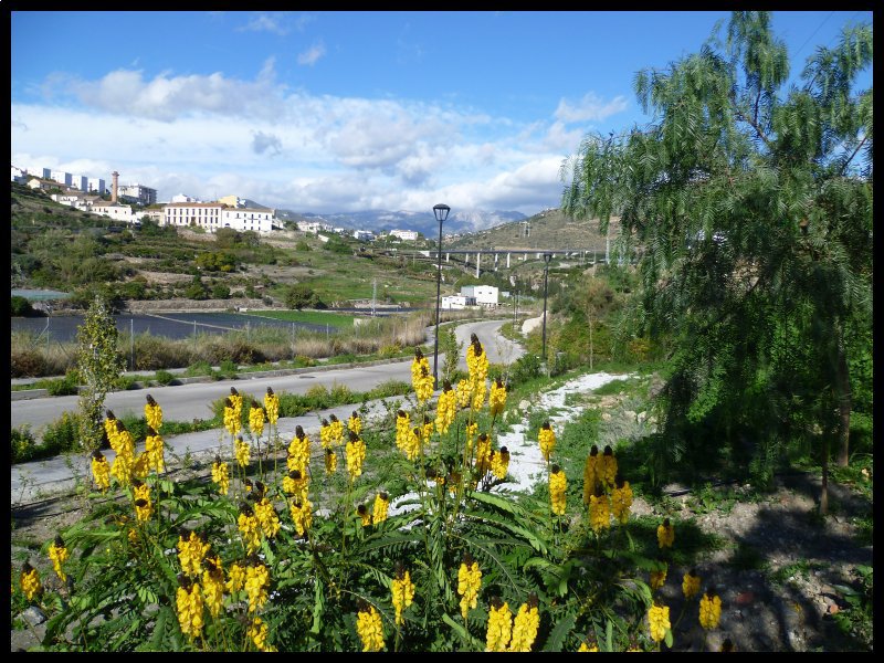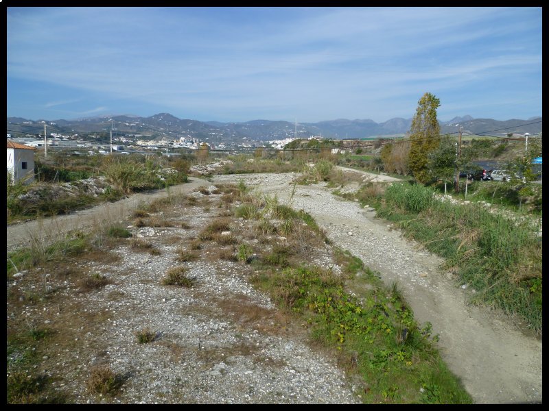 then eventually came to the Plaza de la Constitución, the square which was the venue for the recent Migas Festival. I sat for a while enjoying the sunshine and tranquillity. Not far from the square, the road becomes the main thoroughfare leading down the hill and to the sea front at Torrox Costa, however at the bottom of the hill my route turned left, crossed the bridge over the dried up river bed and up a short,