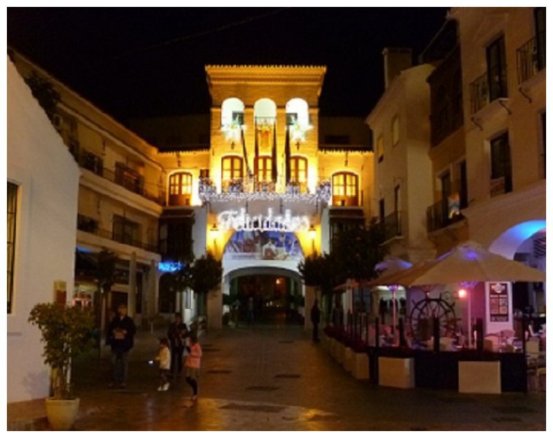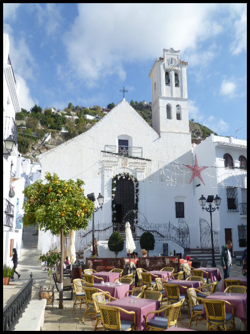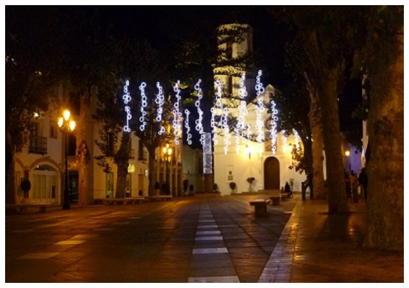 I drove around the narrow streets getting quite close to the church, but sadly, I couldn’t find a parking spot. I had no alternative but to drive back down to the bottom where I found a space. Fortified with a cup of coffee, I started the climb up the hill towards the church. First thing I noticed were the lights across the streets “ Feliz Navidad” – and it’s only the 12 November!