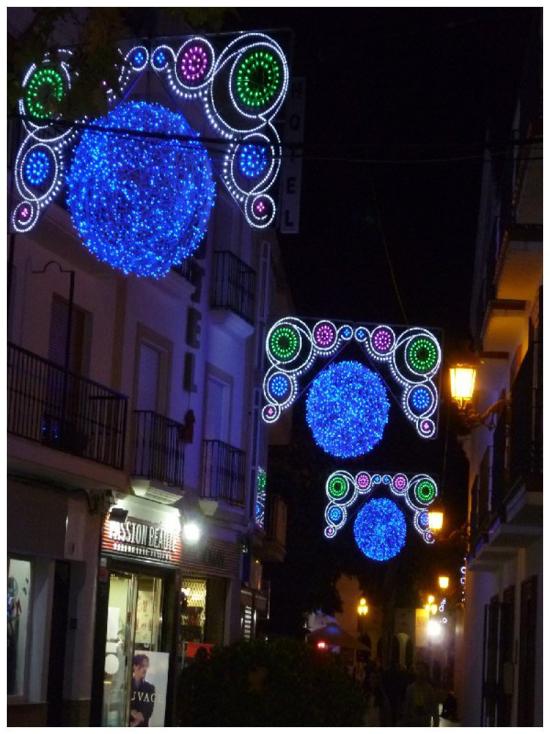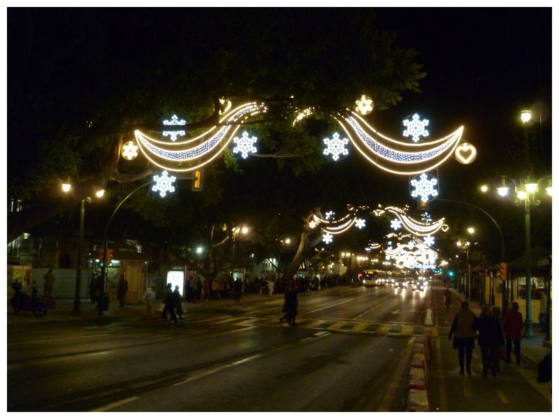 Over the past four weeks so many people here at El Pino have talked about the Malaga Christmas lights that I thought I should go and see them for myself before they are turned off for the last time tomorrow night. Tonight (the 5th of January) is the Fiesta de los Tres Reyes – the arrival of the Three Kings. In traditional Spanish families it’s tonight when children receive their presents and Christmas is not considered to be over until the end of the 6th. Later tonight the Three Kings Fiesta will take place through the street of the neighbouring town at Nerja.