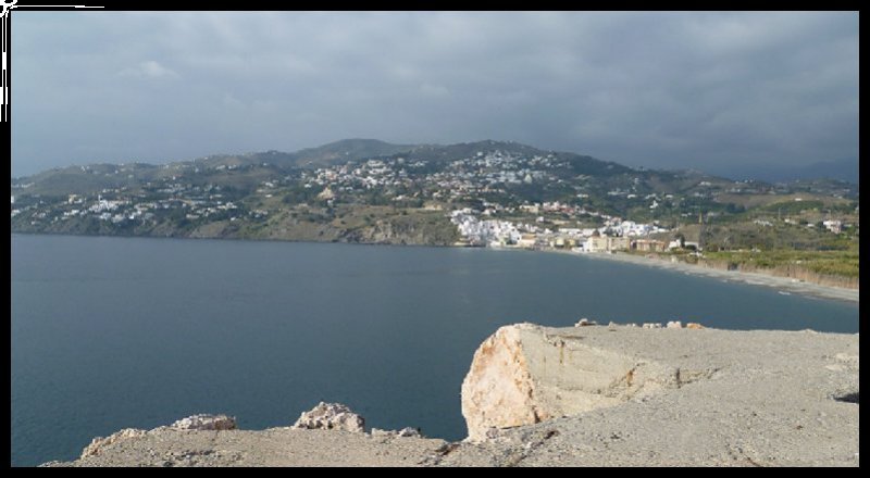 Standing on the breakwater looking across the bay I could identify the town of Almuñéca.