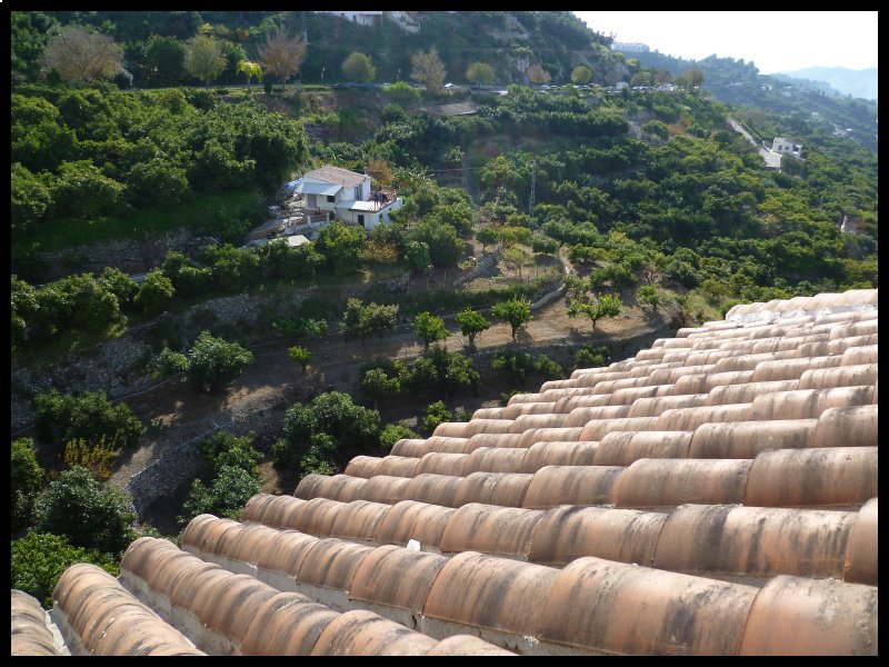 On the steep slopes below the town are the terraces originally built for agriculture during the Arab occupation, with some of them being restored. Gradually the road dropped downwards to where the road crossed a bridge, but immediately began to rise again, until eventually I was able to look down on the flat roofs of the houses,