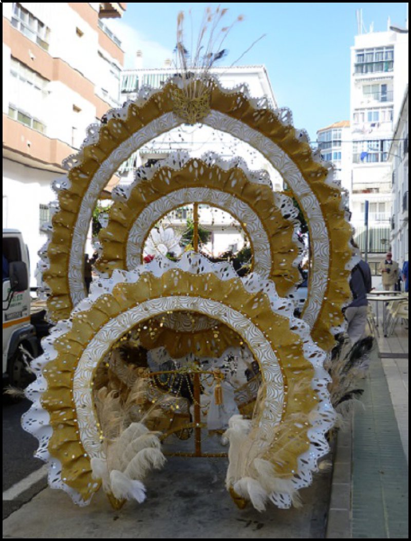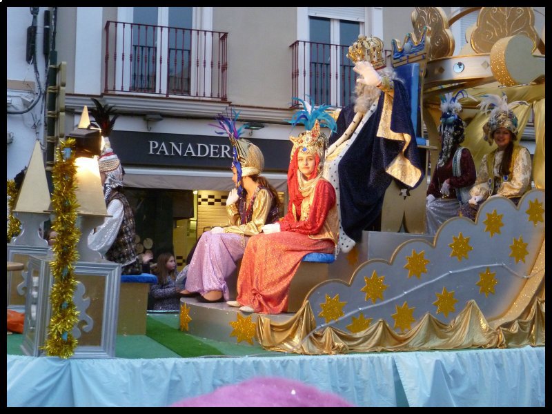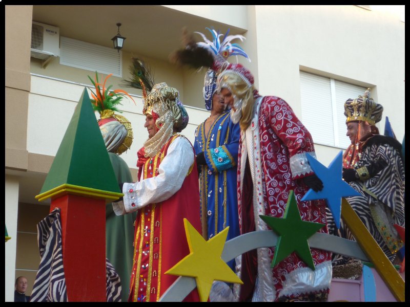Spanish families are equally divided as to whether Christmas Day or the 6th January is the more important. For those who celebrate on the 6th, most towns throughout Spain organize a Fiesta de los Tres Reyes – a Three Kings Carnival. Some caravanners staying here make the journey to Malaga to take part in their Fiesta, but I usually go into nearby Nerja. The carnival forms up in a large carpark on the edge of the town with local groups making up their own section.