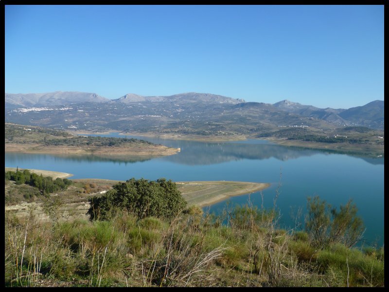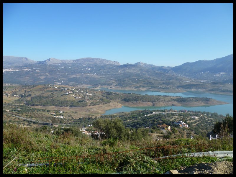 It was time to have another day out. After some thought and map browsing, I decided to visit Antequera. The quick route is along the A7 to the outskirts of Malaga, then the motorway in the direction of Seville. However, I thought it would be more enjoyable to go across country. My route took me along the familiar road up to Lake Viñuela. The water level is even lower than when I last saw it. When I wrote about the Lake several weeks ago our recently departed forum friend, T00ts commented on the views of the Lake from a village higher up the mountain, Los Romanes. Not ever having been there, I decided to make a detour.
