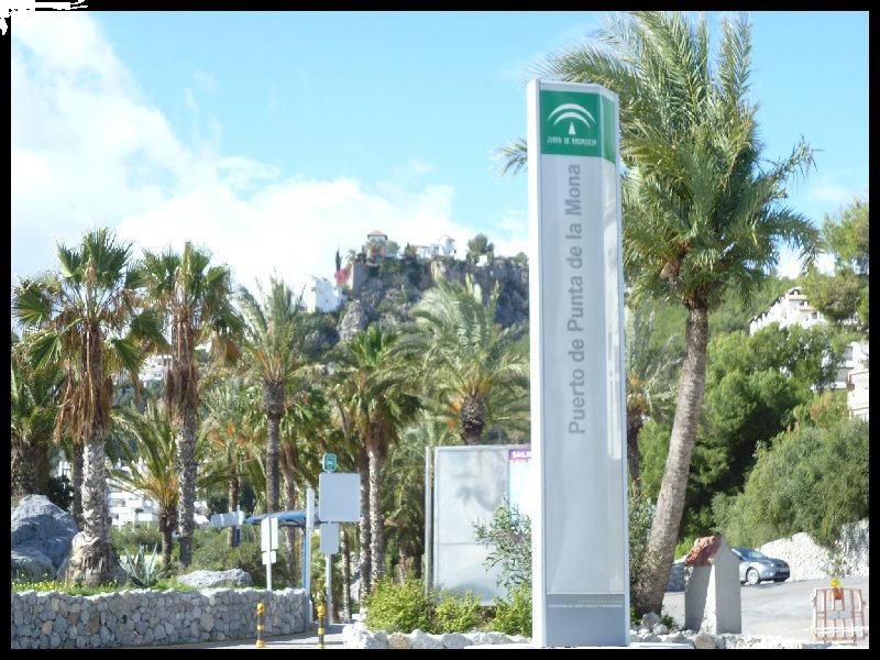 Having visited the Costa del Sol each year for nearly twenty years one would think there would no longer be any new places to see. But not so!. A couple of weeks ago my friend Willy asked me if I’d been to Marina del Este, further along the coast. Apparently he had arrived at it by chance but I was unable to visualize the route he described. I spent some time searching on Google Earth. Eventually I found it along the coastline on one of the headlands. I noted down the GPS coordinates and one day last week, accompanied by my daughter who was staying for a few days, set out to find it. We travelled along the old coast road which carries very little traffic since the A7 AP was opened. After several miles of familiar and beautiful coastline, Tomtom directed me to turn. The narrow road led up over the top of a headland and then by many steep twists and turns, the road ended at a small car park with a harbour close by. The sign declared that we had arrived at the Puerto de Punta de la Mona.