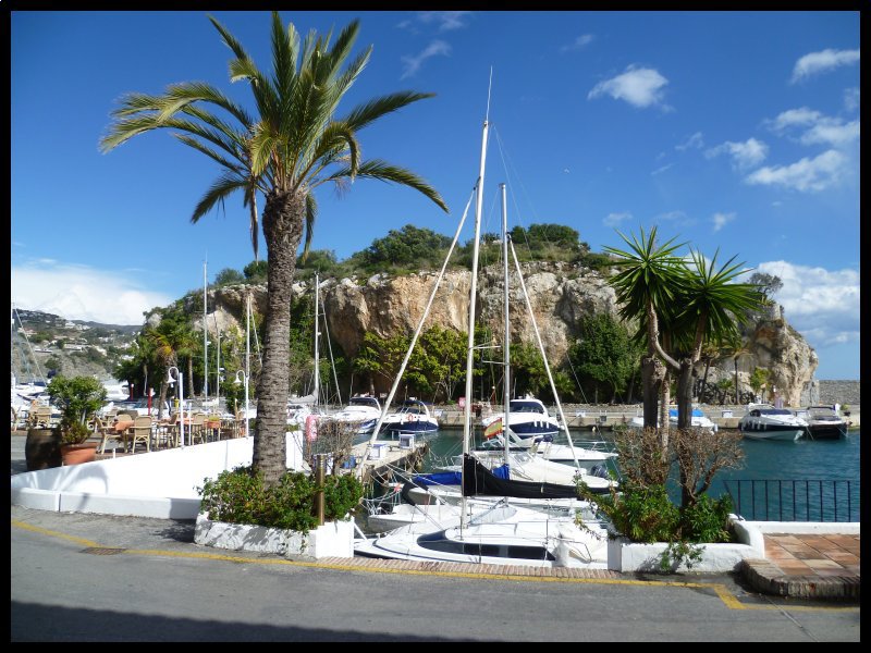 A little further along was a peñón – a huge off-shore outcrop of rock. There are several of them along this section of coastline. Adjoining this one, an angle of dockside had been built so that between the rock and the shore, a very well sheltered marina had been created.