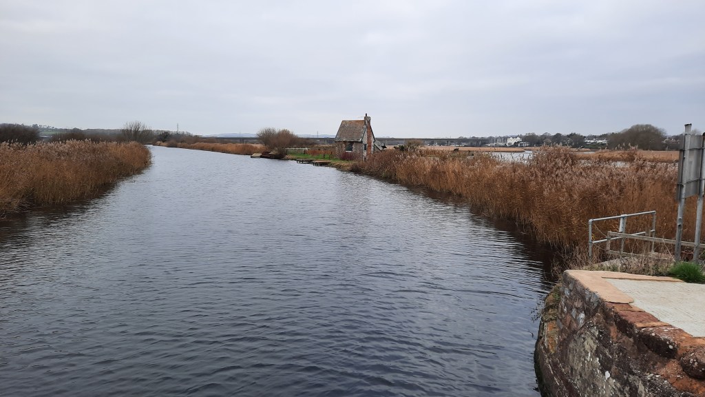 On our first day, we headed off along the Exeter Road and found a parking spot where once there had been a train station, close to the River Exe. The girls and Sam set off walking the river bank downriver, whilst I unloaded my bike and cycled upriver towards the City. In medieval times Exeter was a centre for the wool trade with Continental Europe. But sea-going ships were only able to navigate upriver as far as Topsham, so the bales of wool had to be loaded onto barges and ferried downriver to the quay at Topsham. In the 1500s the Exeter ship canal was built, allowing ships to reach the City. My pictures show views along the canal with glimpses of the river over to the right.