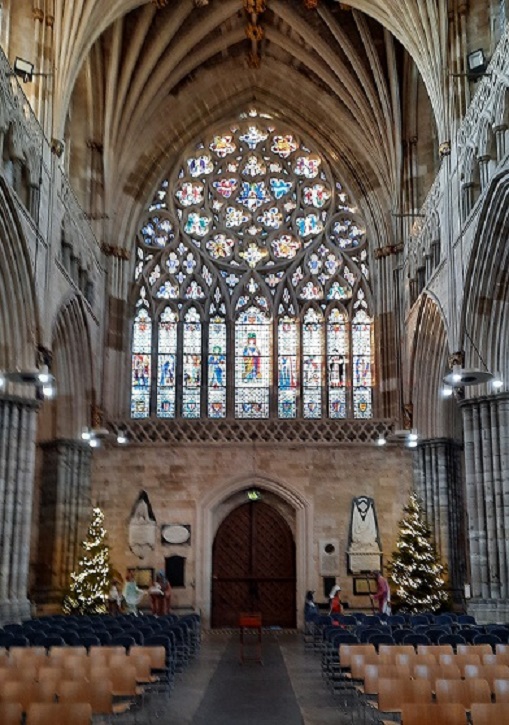 Since in this cathedral there is no central tower at the crossing, we have what is the longest uninterrupted medieval fan-vaulted roof in the world.