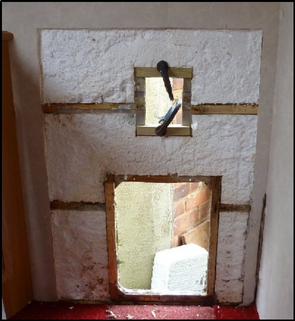 Once dry the board was glued to the framework with grab adhesive and stapled around the edges. To cover the joint, a length of uPVC moulding was mitred and fixed with white silicon.