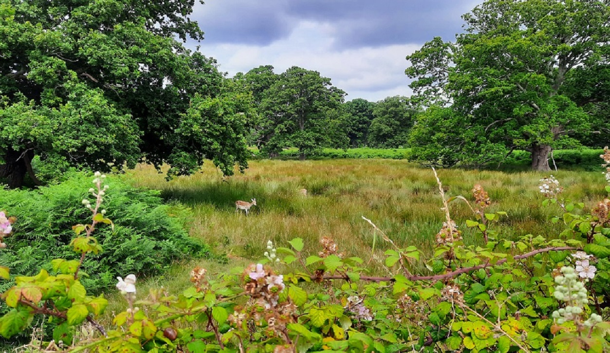 The sunshine has deserted us. Very cloudy and it seems the rain might be not too far away. I did a cycle ride from the site along the local roads, but not much to see because trees stretch along both sides of the road. Eventually, I did find a break where there was a view across the lower-lying countryside.
