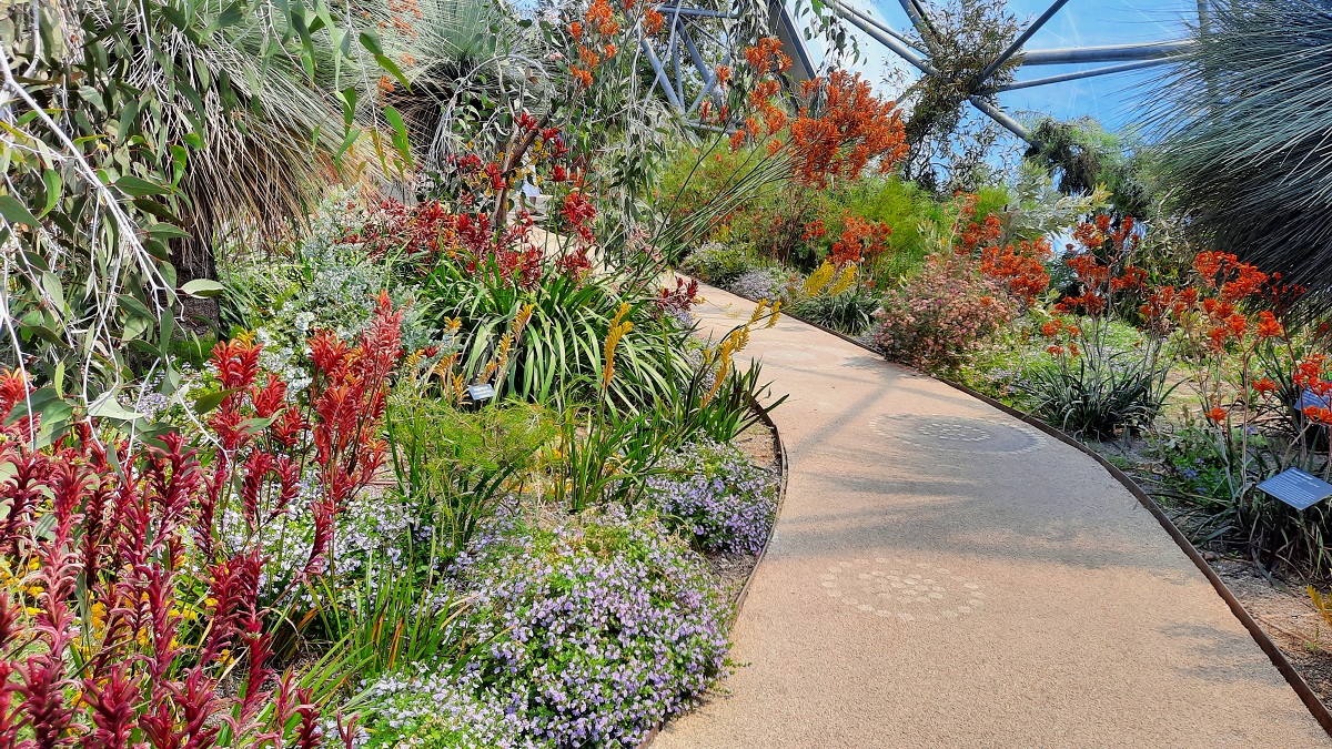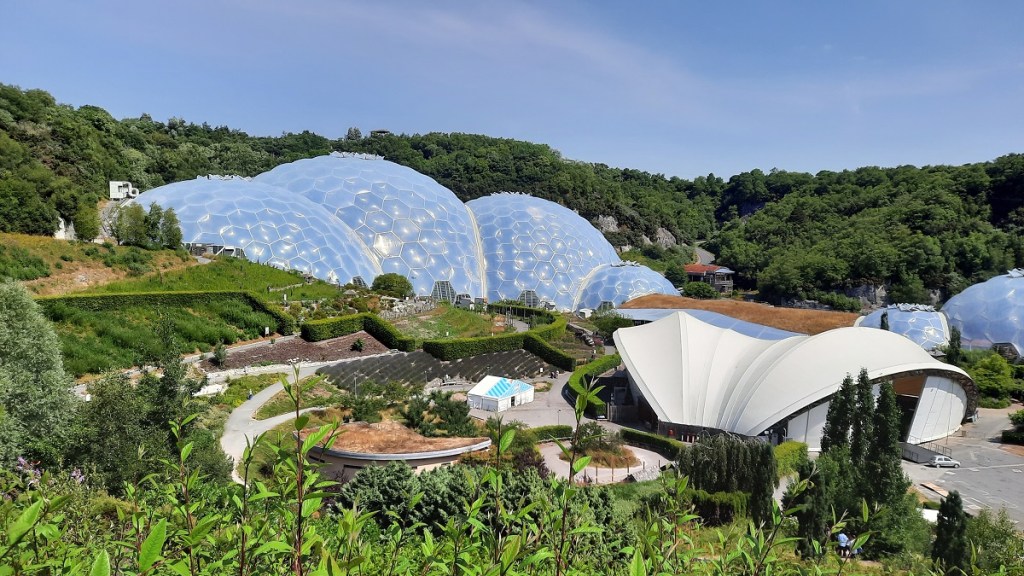 The family wasn’t particularly anxious to join me on today’s visit. We did the trip at this time last year and at an entry cost of £150 for the four of us, I wasn’t surprised. However, I was able to book my ticket using Tesco vouchers so today I set off to visit the Eden Project. It’s a drive of around 25 miles up the coast and I’d booked my slot for 11.30. It covers a lot of ground around the paths of the old, disused quarry in which the project is built. So I unloaded my scooter and used that. My first surprise was the numbers attending. Last year, I joined a fifty-yard queue before reaching one of the box offices. This time, I went straight in without waiting. Maybe the hot weather had put visitors off, but also I wonder if the organisation is not in danger of pricing itself out of the market. £100 is an expensive visit for Mum and Dad and two kids – even without the inevitable ice-creams and drinks. Still, it was interesting to ride through the rain forests of South America and the gardens of the Mediterranean and Australian regions again.