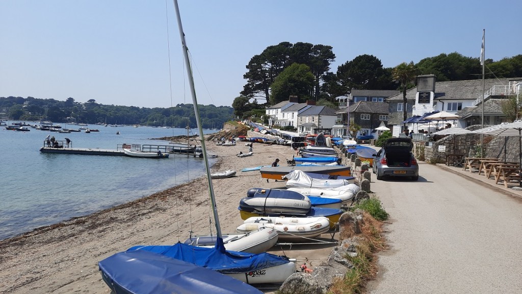 We decided to do our own things today. The girls to take a walk along the coastal footpath whilst I took a drive and then a bike ride. I decided to head across the peninsular and head down to the Helford River crossing. I parked and took a walk to view the track down to the quay. I decided it was much too steep to go down………Well…. No………..It was much too steep to get back up again! I took a few pictures instead and found somewhere to have lunch.