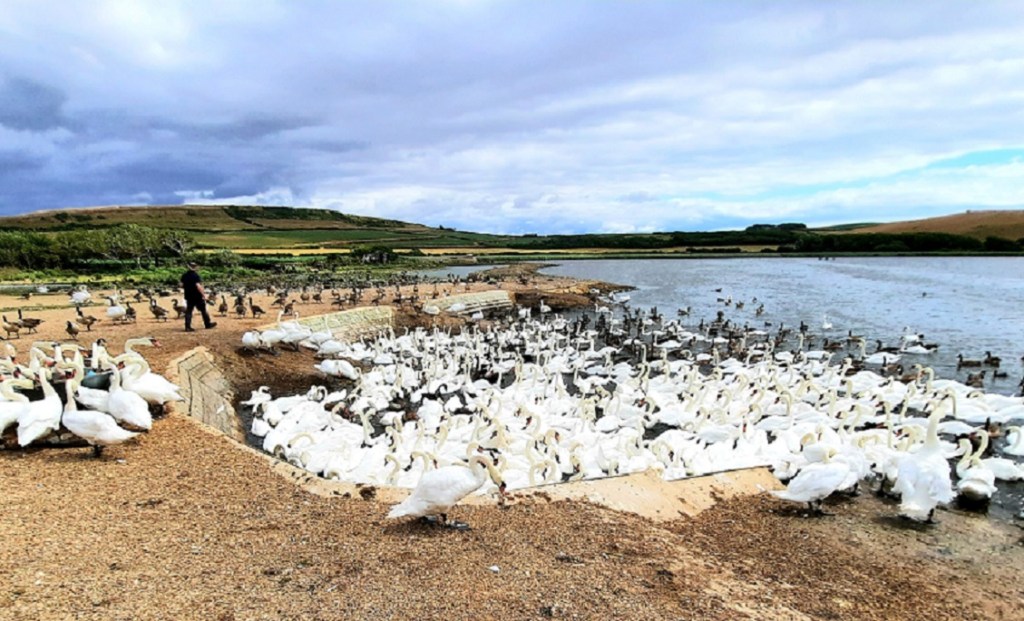 Just before the Norman Conquest a great Abbey was founded here where monks lived according to the Rule of Saint Benedict. Very little of the buildings survive other than a few scattered remains. Part of the Abbey Tithe Barn is still used and there are some remains close to the village church. The swannery also dates from when the Abbey was in use for the Swannery would be used as a source of food. When all the Religious Houses were dissolved during the reign of Henry VIII, the buildings and lands were sold to one of Henry’s advisors, and it is to his descendants that the Swannery belongs today.