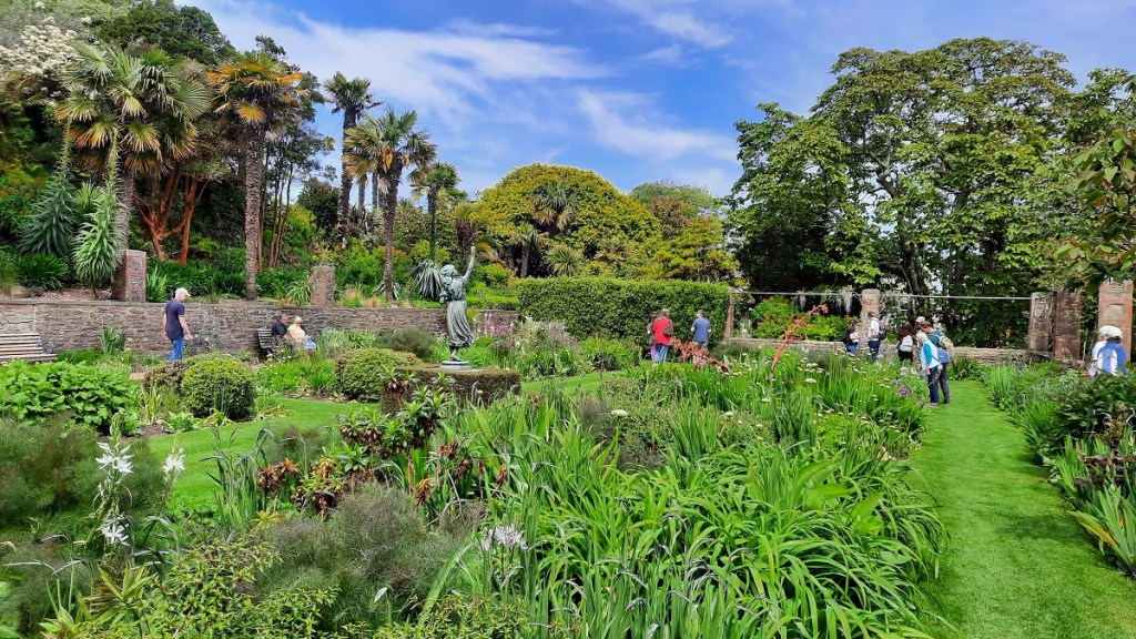 The grounds of the property are immense. Once through the reception area, garden shop and cafe, most of the estate is an RHS-accredited coastal valley garden filled with exotic plants and herbaceous borders. Gravelled pathways stretch down to the cliff top with views over the rugged coast towards Kingswear and the Mewstone, an outcrop of rocks popular with seabirds and seals.