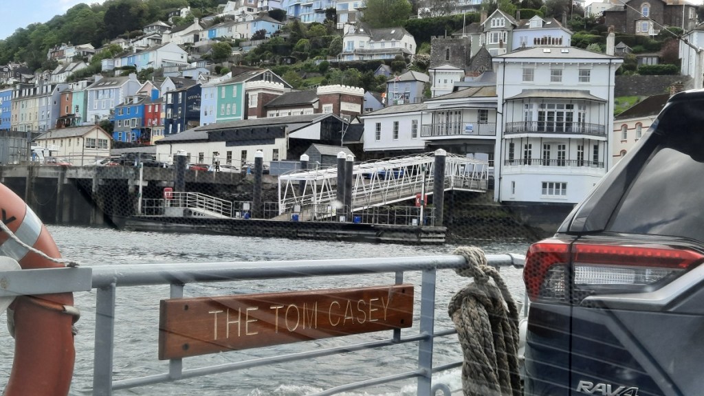 The journey began by driving down to Dartmouth where we took the Lower Ferry across the Dart Estuary to Kingswear. The ferry is a simple floating platform, pushed along by a tug boat moored alongside the platform. Each platform holds approximately ten cars. On mid-summer days, the queue of waiting vehicles could possibly be long, but on Tuesday, our wait was around five minutes, and we were the last vehicle to board.