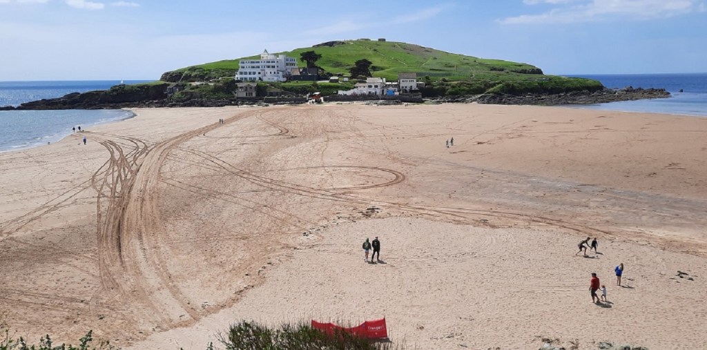 Fortunately, all I had to do was to drop off the girls and Sam, then retrace my steps back to wider tarmac. I then proceeded to drive to the carpark at Bigbury-on-Sea. Meanwhile, the family set out on a five-mile hike along the South Coast Path. Being fairly early in the day, I was able to select a ‘choice’ parking bay in the cliff-top parking area.
