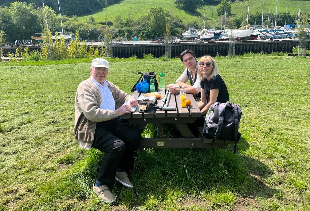 Today was Sam’s departure day. He was travelling to Falmouth for a few days to meet up with girlfriend Anna and other friends from his Exeter Uni days, before returning to St Andrew’s. His departure point was the 2pm train from Totnes Station. So during the late morning, we all arrived at Steamer Quay and found a parking spot. The girls and Sam set off at a brisk pace alongside the River Dart, leaving me to take a slow amble at a much slower rate. In due course, we met up to have lunch in the River meadow, before making the short drive to the station.