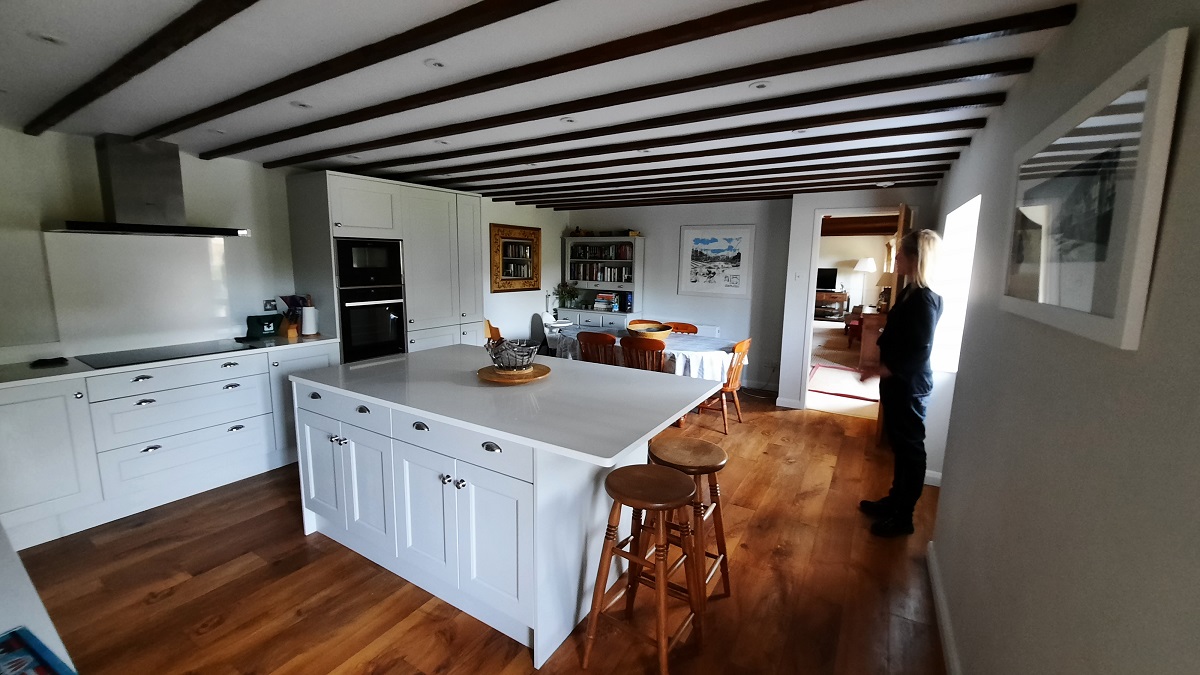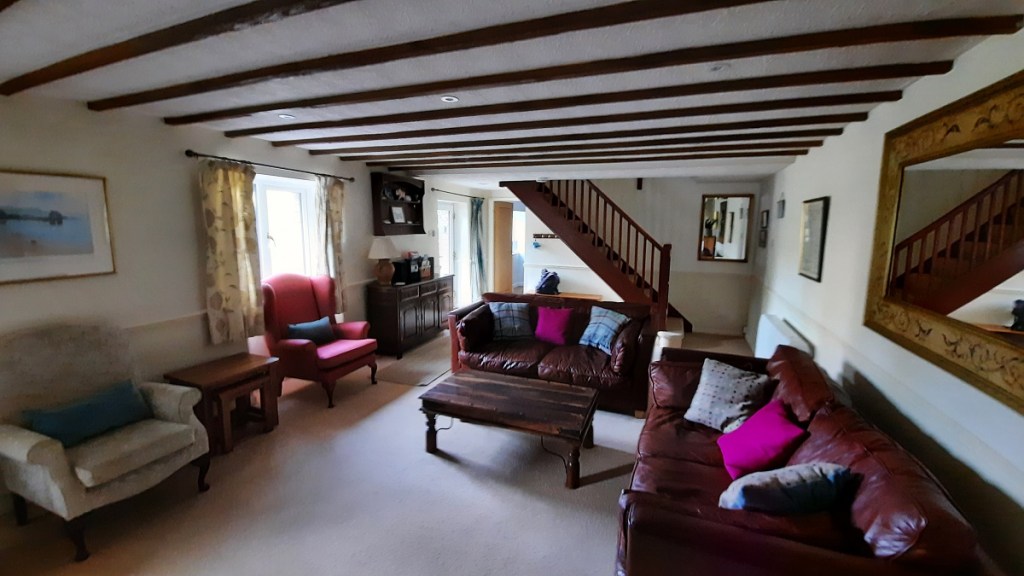 But finally, we arrived and let ourselves in. What could one say, other than WOW. The accommodation was once an 18thC barn, so it still has the beamed roof, however, the beams are in the bedrooms, having had a ceiling put in to give two floors. The downstairs is made up of two huge rooms, a lounge and a massive kitchen which has recently been refitted to a high standard with every appliance imaginable. Upstairs are three large bedrooms, two of which have en-suite bathrooms.