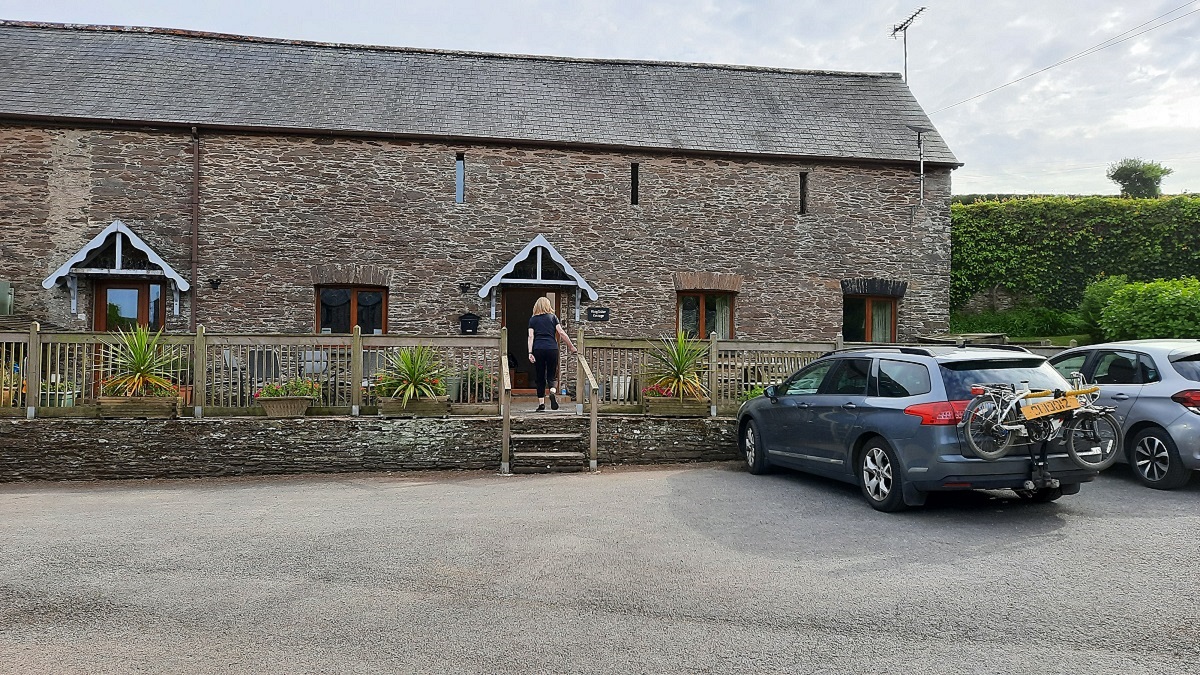 We were loaded and ready to leave by 10.30 and in spite of Google’s prediction of a snarled up M25, we found it flowing well. In no time, we were on the M3 heading west. As usual, we stopped at Soltice Services where there’s a Coop supermarket, filling station and toilets, together with the usual Kentucky, MacD and Costa. Amazingly, traffic was very light passing Stonehenge and we didn’t stop again till we reached the “diner” where the A303 becomes the A30. Our journey progressed smoothly around Exeter on the M5 and eventually, I took the A38. From the turn to Totnes, there are a dozen or so miles of twisting A-roads, then finally a nightmarish five miles of high hedged, country lanes, with local traffic and white vans hurtling along much faster than what’s good for them.