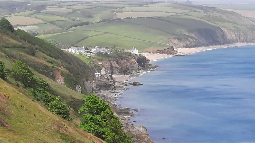 From there, I had a view of the lighthouse, and all around the coastline as far as the Estuary at Dartmouth. Down below me, I could see the remnants of the seaside village of Hallsands, a village destroyed by man-created damage. In the late 1800s when the Admiralty wanted to enlarge Plymouth as a naval base, contractors decided that just offshore in Start Bay there was an unlimited supply of suitable gravel for the mixing of the concrete. Over many months, millions of tons were dredged from the sea-bed and barged along the coast to Plymouth. In spite of warnings of damage to the beach, several government enquiries permitted the dredging to continue. But during a violent winter storm in 1917, the huge waves washed away the beach. The shingle beach slipped out into the bay, filling the trench. With the beach gone, the 42 houses in the village all collapsed into the sea, leaving just two standing. Given that the collapse took place during the hours of darkness, amazingly, no one was killed.