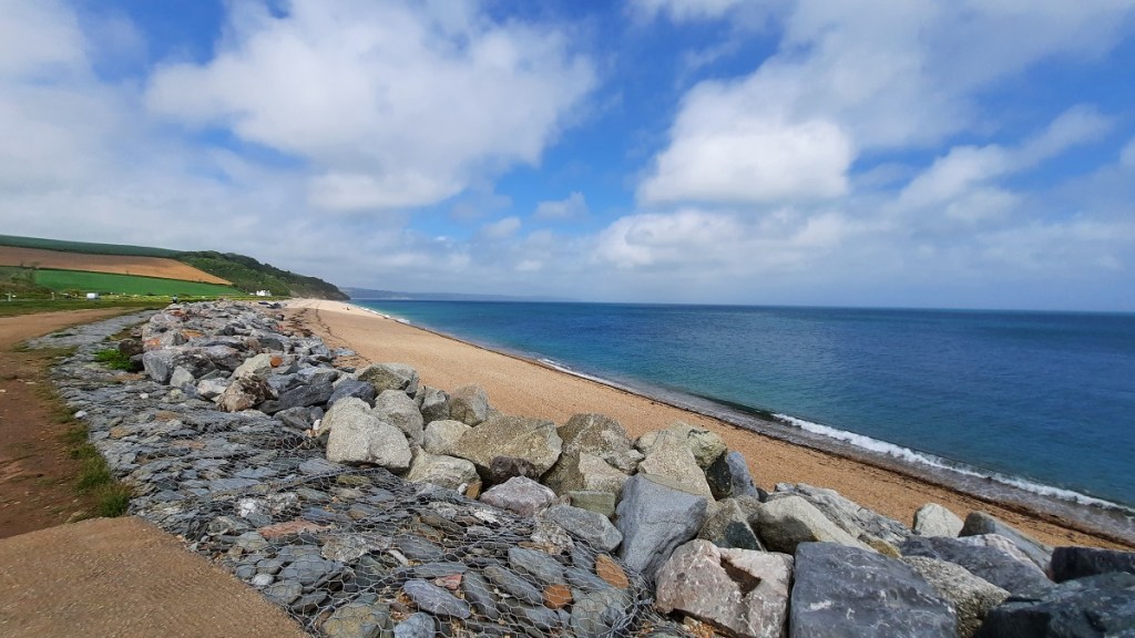 In due course, I set my Tomtom for Beesands, a small village at sea level and where the coastal path drops down from its cliff-top route. Here we found some picnic benches set out on the green where we sat to enjoy a late lunch, overlooking a lovely beach.