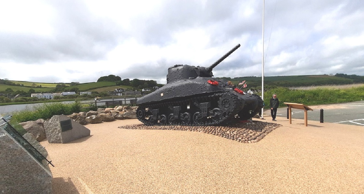 The rehearsal involved both American and British forces of both the army and the navies. Unbeknown to the naval ships, a flotilla of German E-boats based in Cherbourg got curious about the activity and very soon got amongst the US landing craft. Two US landing craft were sunk with a huge loss of life. The memorial is in the form of a US tank dredged up from offshore along the beach. Several more tanks and vehicles still sit on the seabed a few hundred yards from the beach.