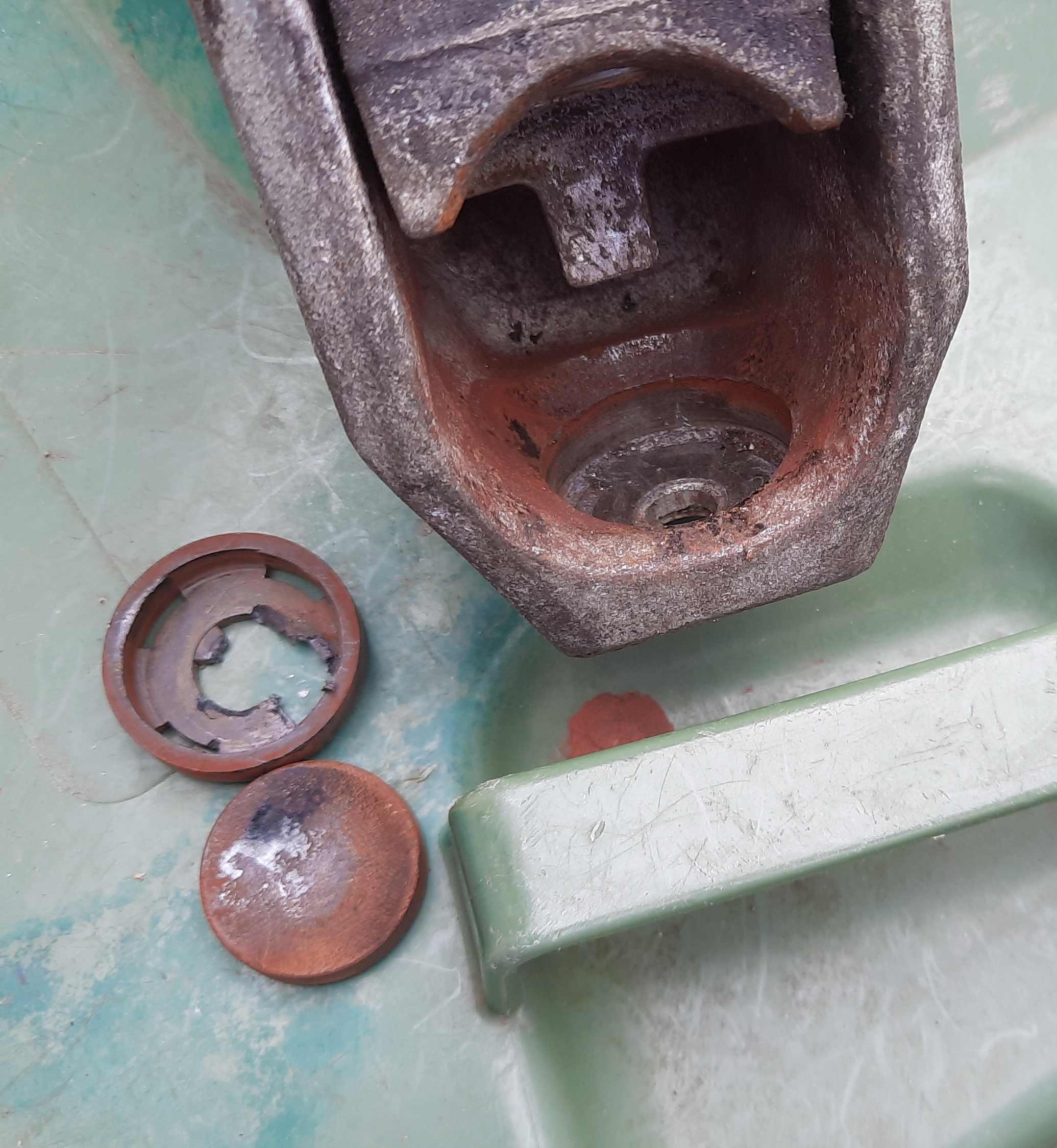 The chassis manual says “The pads are very easy to change if worn”. Nevertheless, I decided to remove the hitch from the van and work on it in the garage. Which was a good decision otherwise the job has to be done in the crouch position using a mirror. Note: If you remove the hitch don’t forget to knock in a 45mm length of 12mm bar to replace the rear mounting bolt because the bolt also holds the shock absorber in position. For more details on removing the hitch, see my earlier blog about renewing the hitch bellows.