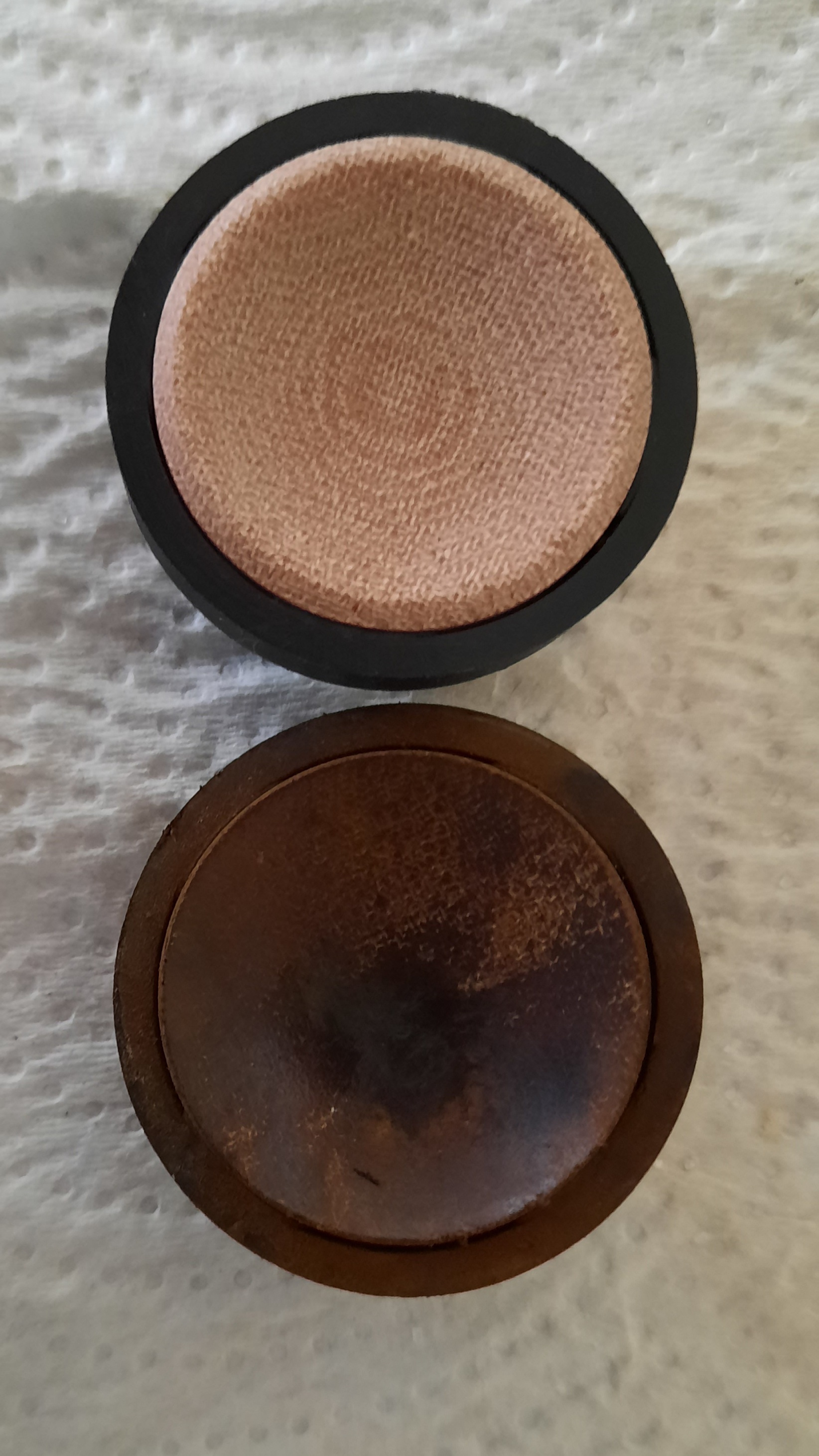 The new and old. Note the feather edge on the old pad indicating considerable wear.
