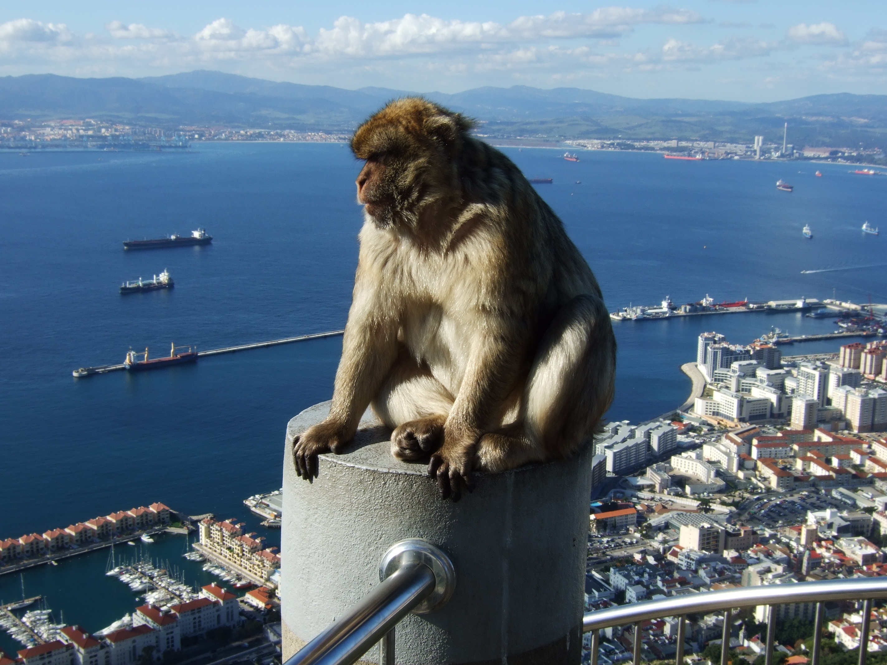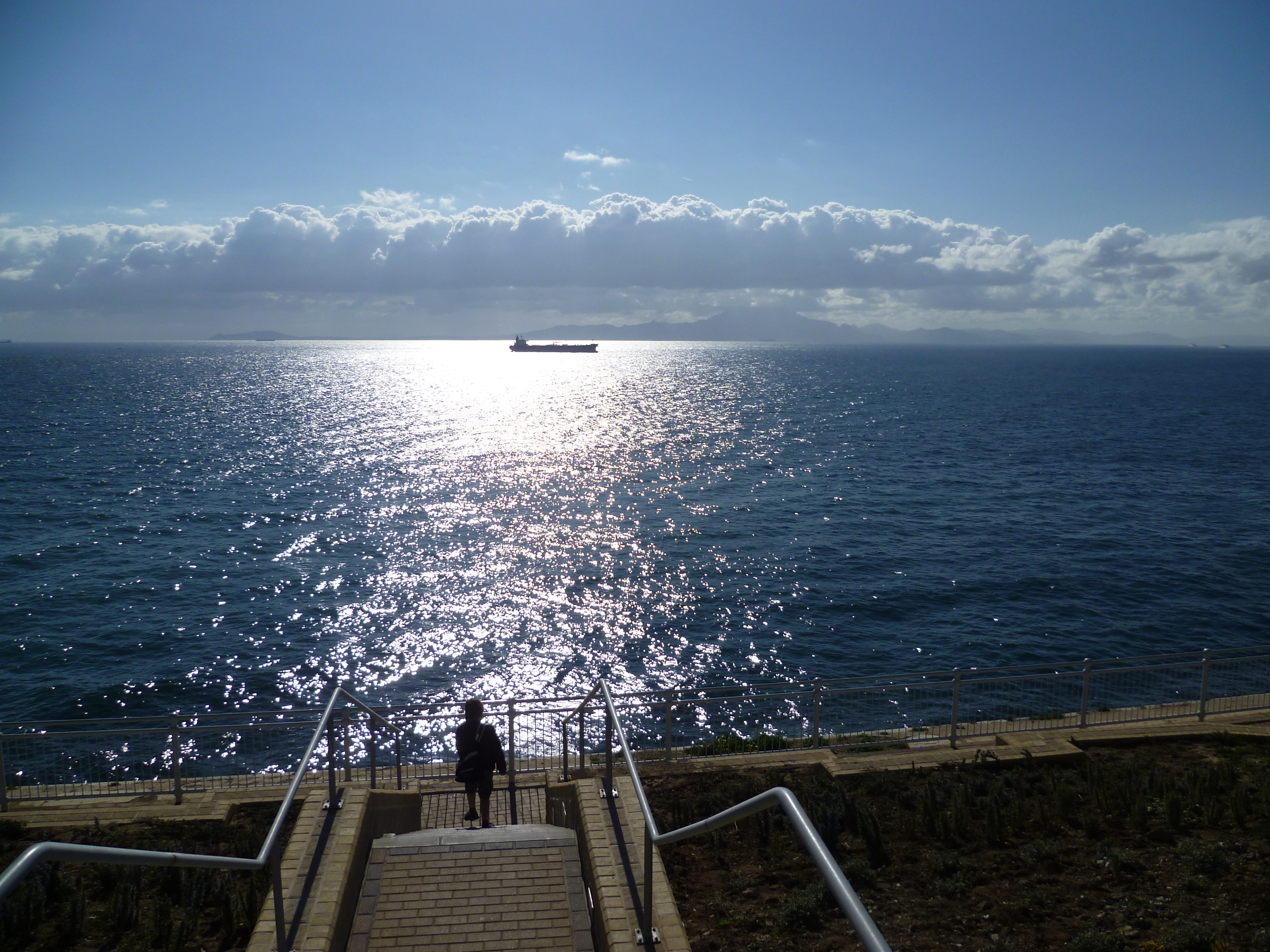 We joined a long queue of cars which snaked along the harbour side to await our turn to go through the check-point. Depending upon how annoyed the Spanish Government in Madrid is with the UK Government about not handing over Gibraltar to them determines the length of time travellers are delayed at the border crossing. Sometimes it can be counted in HOURS. Forty-five minutes later, having successfully entered, the next likely hold-up is at the runway. The runway at Gibraltar goes from one side of the peninsular to the other. If an aircraft is expected to land or take off, road traffic is halted similar to a giant railway crossing. But we were fortunate in that we were able to drive straight across. We headed down to the most southerly point and parked the car. The day was beautiful with the coastline of north Africa looking much less than its thirteen miles away. We sat out on the prom to have lunch.