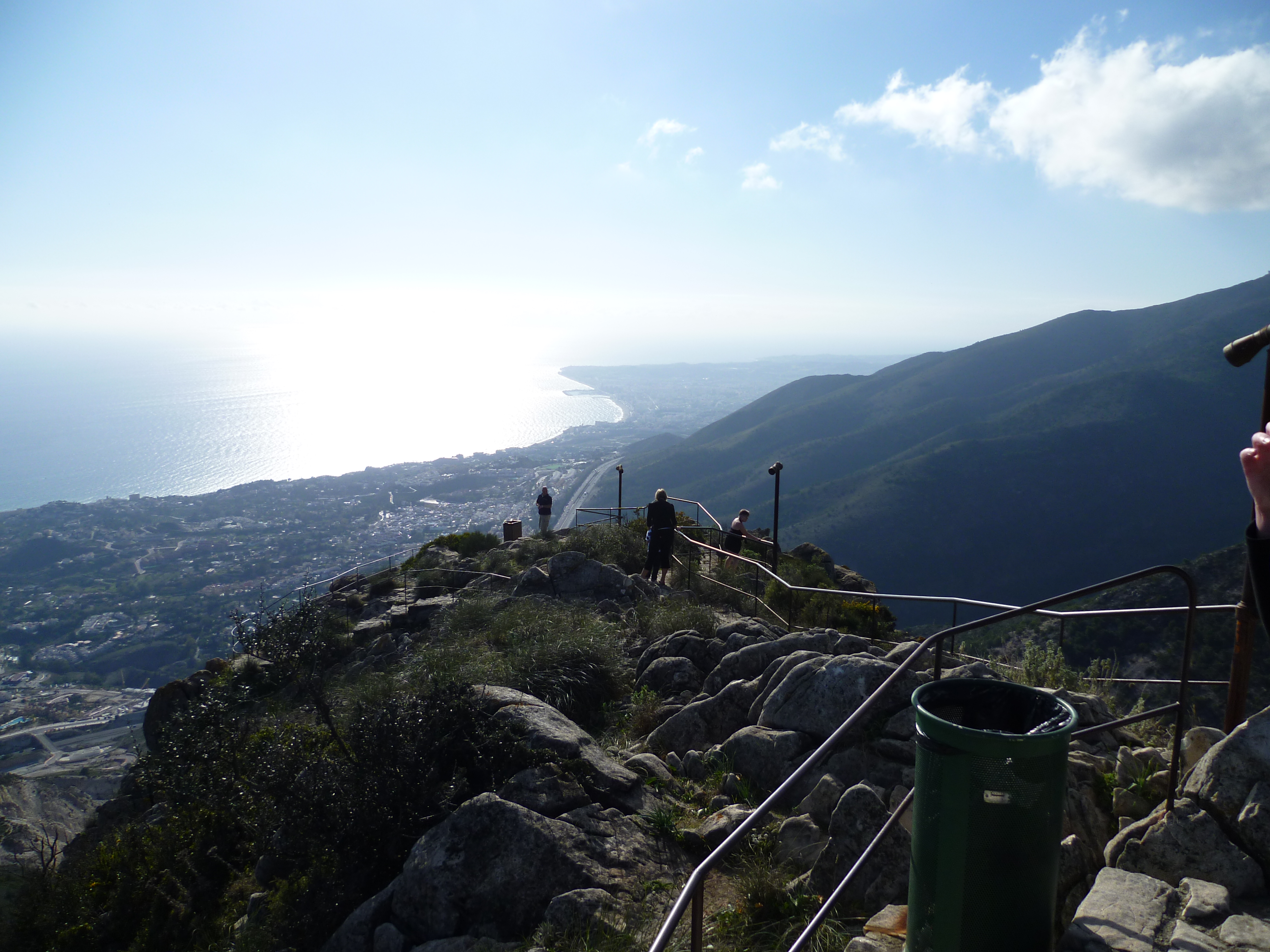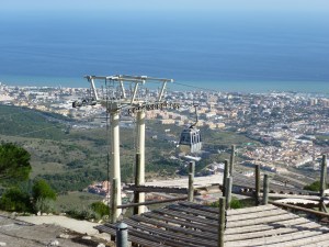For today’s visit we decided on the Teleférico at Benalmádena. From the town, cable cars take passengers up to the top of the mountain behind Torremolinas. The drive was in the same direction as that which we took yesterday but this time only forty miles. Fortunately we arrived at the top just as the Birds of Prey display was starting so it was to there that we went first. They had several eagles, falcons and owls performing. Later we followed the trackway around the mountain top taking in the amazing view.