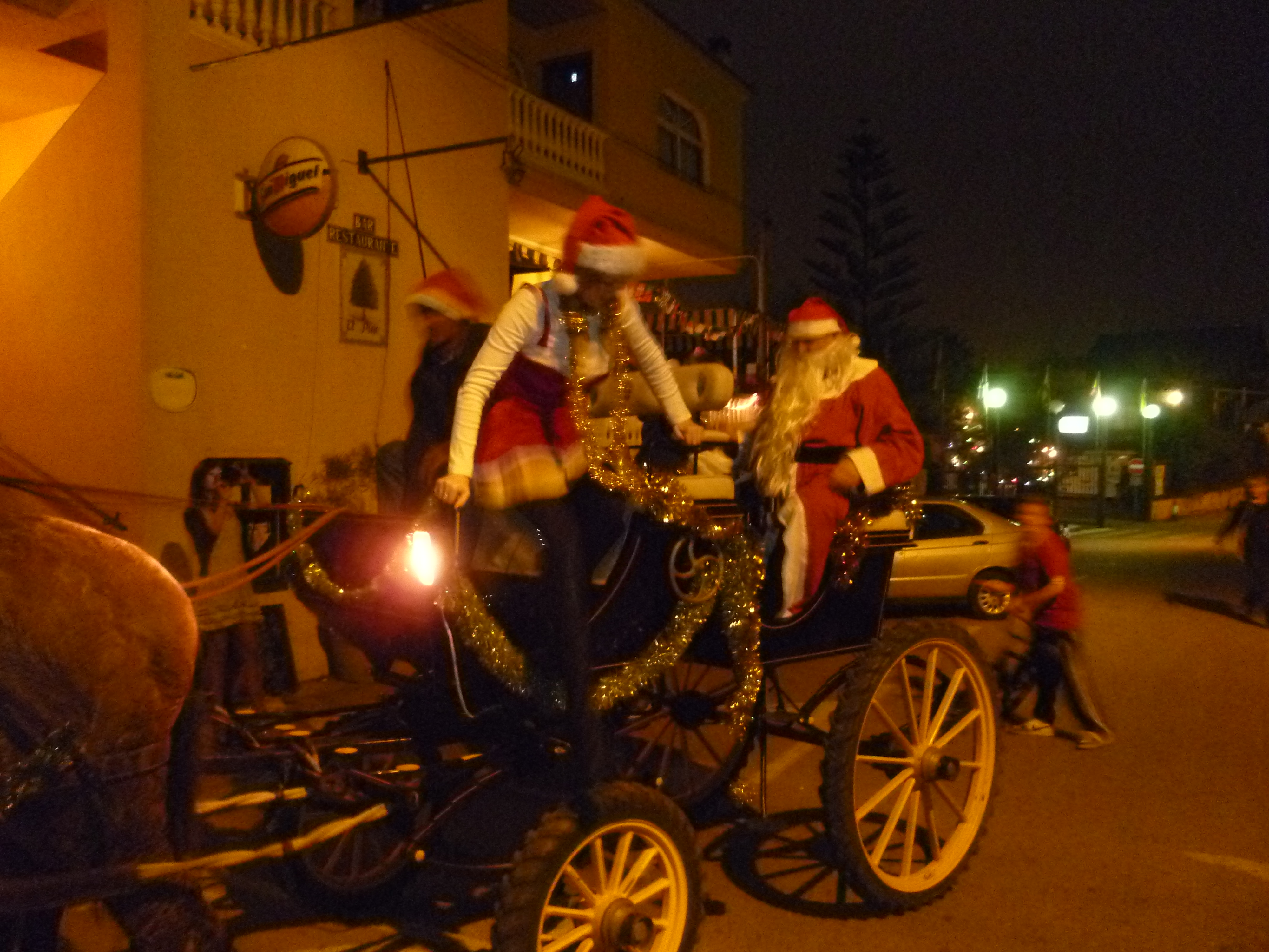 Each Christmas Santa Claus arrives in his carriage drawn by two horses. After touring the site he goes into the bar where he’s greeted by crowds and where he hands out gifts to the children. Later we drove to the Bamboo for dinner. Afterwards we walked through the streets to The Balcon to see the Christmas lights. To our surprise the place was virtually deserted.
